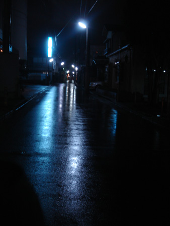 夜の電灯が雨で道路に映ってきれいだったので撮りたくなりました。
