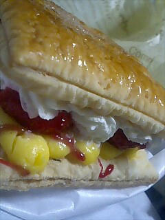 パイ生地に生クリームとカスタードとイチゴが挟んであります。