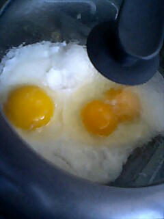 で、無精卵とバイトでいただいた有精卵との食べ比べをしようと、無精卵を割ったら双子…あ、初めてみた(笑
